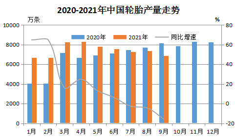 近日,国家统计局发布2021年9月轮胎产量数据。