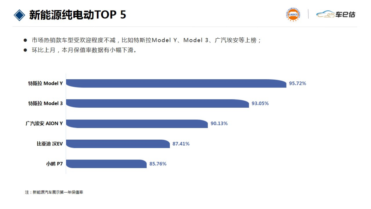 近日,全国工商联汽车经销商商会与车e估联合发布了《2022年8月汽车保值率报告》,其中,Model Y凭借95.72%的超高保值率,斩获纯电动汽车保值率榜单第一,而Model 3也以93.05%的保值率位列第二名。
