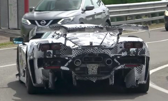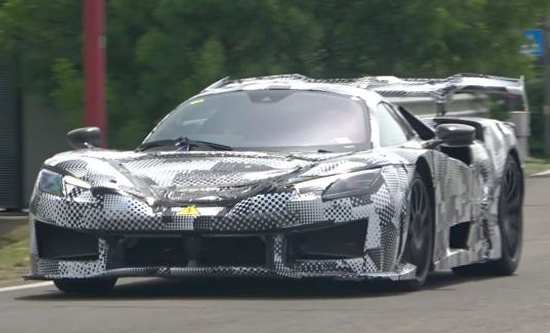 车侧造型较为扁平,虽然伪装较厚,但路试车还是在车身中部位置粘贴了一个带电危险的标志,由此推测,新车在动力方面或将拥有电气化系统加持。车尾大尺寸扰流板相当吸引眼球,而两侧的尾灯组样式则颇有些SF90的感觉,从某种角度来说也算是一种传承。后包围内部集成了贯通式散热开口,搭配中置双出的排气布局,视觉效果十分激进。得益于大尺寸的底部扩散器,预计能够带来更好的地面效应。