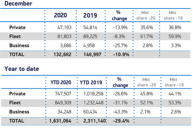 由于新冠病毒疫情大流行严重打击了汽车行业,2020年英国新车销量为1,631,064万辆,为1992年以来最低水平,较2019年下跌29.4%,为1943年以来最大年度降幅。