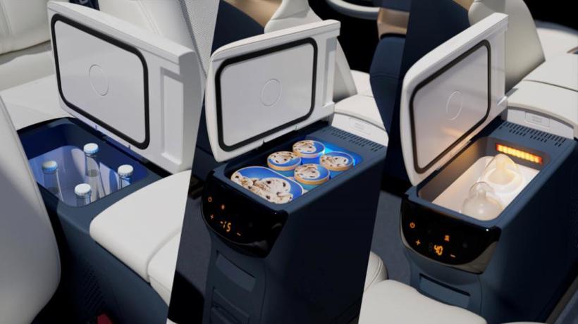 此外,该车还配有5.7L的冰箱,温度可控在零下15度到50度,与很多最低温度为0度的车载冰箱相比,极氪X的冰箱不玩虚的,将车载冰箱回归到大众的认知范围。