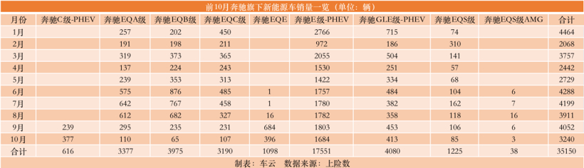 上险数显示,奔驰前10月在国内的新能源车销量为3.5万辆,在所有销量中的占比为5.48%。