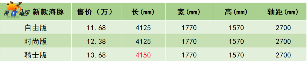 除此之外,新款海豚还在原有的节能/雪地/运动三种驾驶模式基础上,新增舒适模式,为用户带来多种方式的驾乘体验。全系标配主驾电动6向座椅调节;时尚版和骑士版新增后排座椅4:6比例放倒、后排中央扶手、前驻车雷达、副驾4向电动座椅调节、前排座椅加热功能和四门车窗一键升降防夹、外后视镜电动折叠等便捷配置。